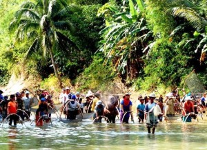 Dia menambahkan.”Kami serombongan secara beramai-ramai akan berendam menyusuri sungai mencari ikan sampai dapat hingga menjelang maghrib nanti.ucap Bapak dua anak ini.