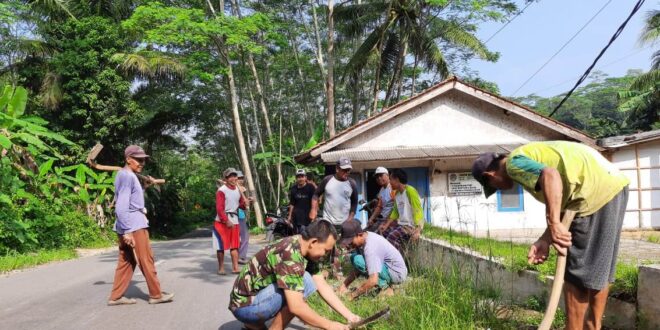 Warga RW 03 Desa Darmakradenan, Kecamatan Ajibarang, sedang melakukan bersih- bersih lingkungan, Minggu (15/03). (Foto: darmakradenan Doc)