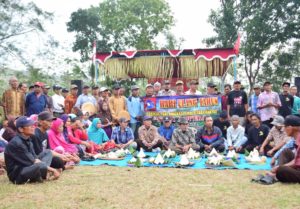 Ke 19 tumpeng tersebut kemudian di letakan di tengah lapangan dilanjutkan doa bersama di pimpin tokoh agama setempat, 19 tumpeng itu selanjutnya dibagikan para tamu undangan yang hadir untuk di makan bersama di tengah lapangan.