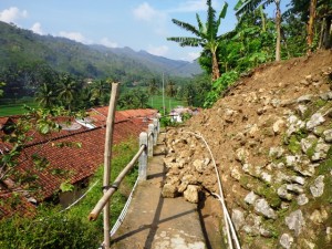 mengancam rumah, jalan penghubung Darmakradenan-Gumelar pun menjadi ancaman berikutnya. Sebab, tebing disekitar jalan itu kemiringannya tegak lurus.